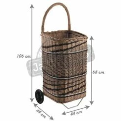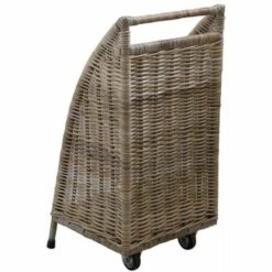 Chariot à bûches en osier bicolore sur roulettes