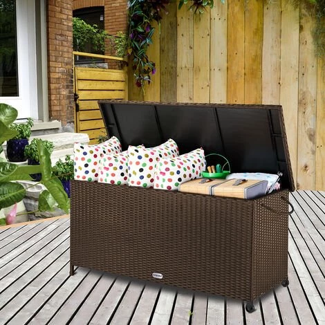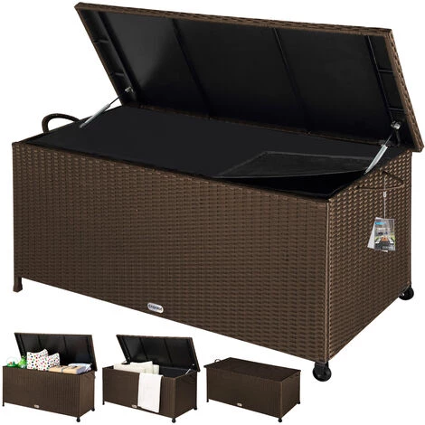 Ce coffre de rangement robuste en polyrotin facile à nettoyer offre assez de place pour ranger vos coussins et autres accessoires de jardin. Le couvercle s’ouvre et se ferme facilement à l’aide des 2 vérins à gaz.