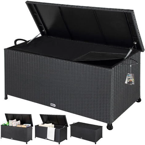 Ce coffre de rangementrobuste en polyrotin facile à nettoyeroffre assez de place pour ranger vos coussins et autres accessoires dejardin.Le couvercle s´ouvre et se ferme facilement à l´aide des 2 ressortsà gaz.