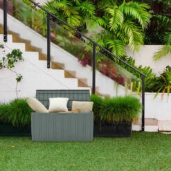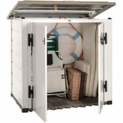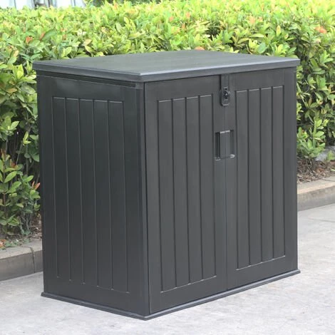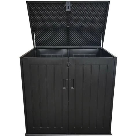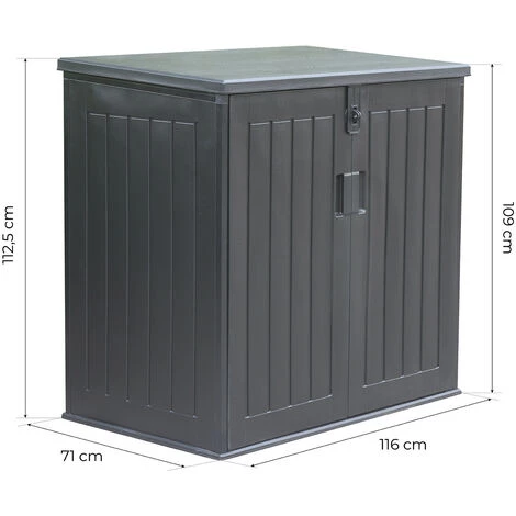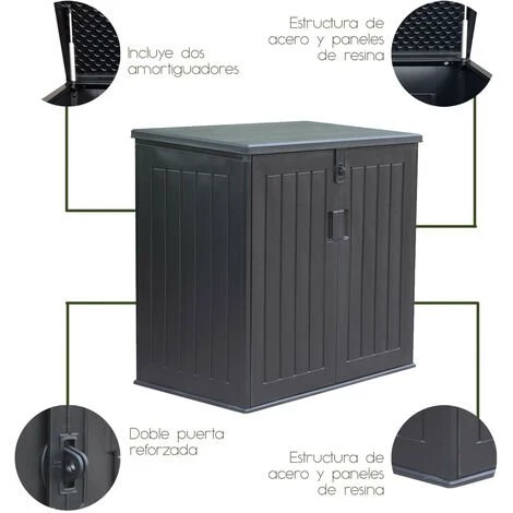 Coffre en résine idéal pour l’extérieur et l’intérieur avec une grande capacité de 775 litres. Les coffres de jardin sont une bonne solution de rangement qui vous permet de stocker et de protéger vos outils, vos accessoires de piscine etc. Très utile pour placer l’épurateur de la piscine car il possède une ouverture frontale avec deux portes pliantes qui vous permettront un accès confortable, ainsi qu’un couvercle supérieur que vous pouvez fermer avec un cadenas (non inclus). Vous pourrez également cacher les poubelles. Il a un design compact et moderne avec des panneaux en polypropylène solides et résistants en noir et gris pour que vous puissiez le placer dans n’importe quel espace. Son grand avantage est qu’il possède un plancher qui empêche la poussière et l’humidité de pénétrer à l’intérieur et qui permet d’accéder facilement aux outils avec roues. Il vous suffit de soulever son couvercle à fermeture progressive grâce aux deux amortisseurs à gaz qu’il intègre.