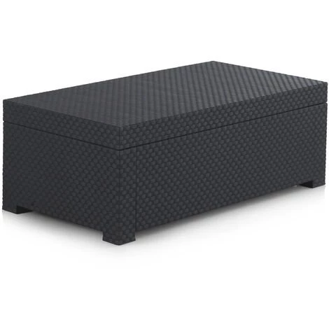 Coffre de rangement de jardin 120L en résine tressé Anthracite Utilisation intérieure et extérieureTaille adaptée pour les coussins de rangement et les objets de jardinFabriqué 100% en Espagne avec PP recyclé. Produit 100% recyclableDimensions : Longueur 117 x Profondeur 63 x Hauteur 43 cmMatière : résine Coloris : AnthracitePoids : 9 kg