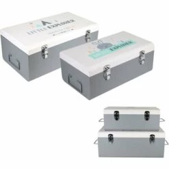 Ces 2 beaux coffres de rangement séduiront à coup sûr les enfants ! – Rangement malin et déco – Dimensions : 47x28x19 cm 39x23x15.5 cm – Composition : Métal – Design avec illustrations – Fermoirs métalliques