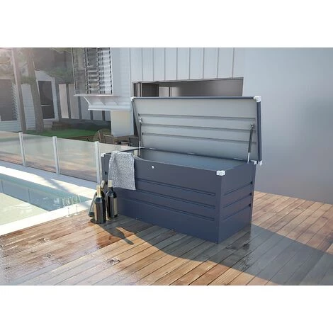 Compact et fonctionnel, le coffre de rangement métallique Gardiun Arcana I peut être utilisé dans des terrasses et est idéal pour de multiples utilisations. Il a un couvercle rabattable avec une ouverture facile, il est doté d’ amortisseurs à gaz et il est assemblé à l’usine, ce qui facilite et accélère le montage. Le coffre est renforcé en acier HDS et ses fixations sont de qualité. Serrure à clé, vissée en deux points pour plus de sécurité. Avec la Garantie du fabriquant, Gardiun.