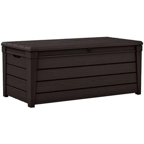 Le coffre Brightwood offre une grande capacité de stockage et un grand impact visuel avec des panneaux en bois. Entièrement construit avec de la résine durable et résistante aux intempéries.