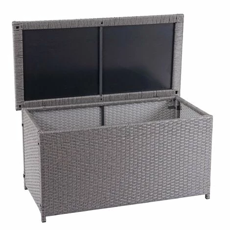 Coffre de rangement en polyrotin pour jardin gris basic 51x100x50cm 170L