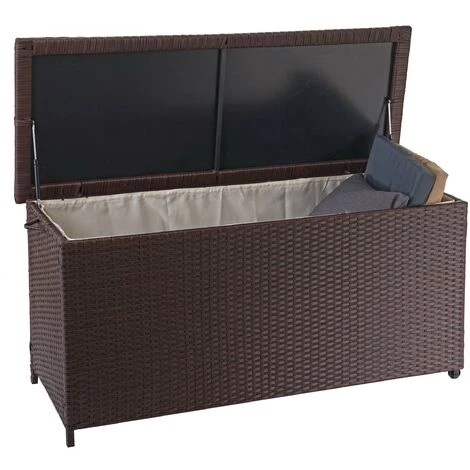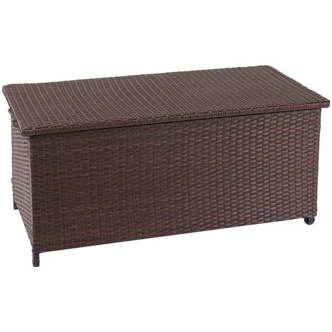 Coffre de rangement en polyrotin pour jardin marron premium, 63x135x52cm 320L