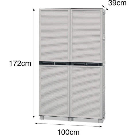 STRUCTURE ET UTILISATION – Sa structure est complètement modulaire avec tous les éléments de la même ligne : grâce à la construction en couches, les murs sont porteurs et les étagères intégrées construites avec le système ISS sont capables de supporter des charges élevées qui garantissent une stabilité maximale au structure – ils sont surmontés par la partie supérieure du meuble pour assurer une ouverture parfaite, sont équipés de charnières en acier résistant à l’usure – Surélevés sur pieds – Équipés à l’intérieur de crochets à balais et de trois petites étagères – Parfait pour une utilisation en extérieur, comme balcon, terrasse , jardin et cour intérieure, comme cave, débarras et sous l’escalier.