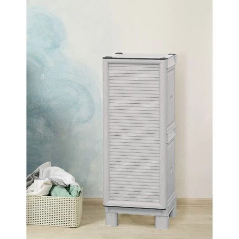 ARMOIRE POLYVALENTE – Armoire polyvalente avec une porte et une étagère interne avec structure surélevée sur pieds, entièrement de couleur Gris Clair.