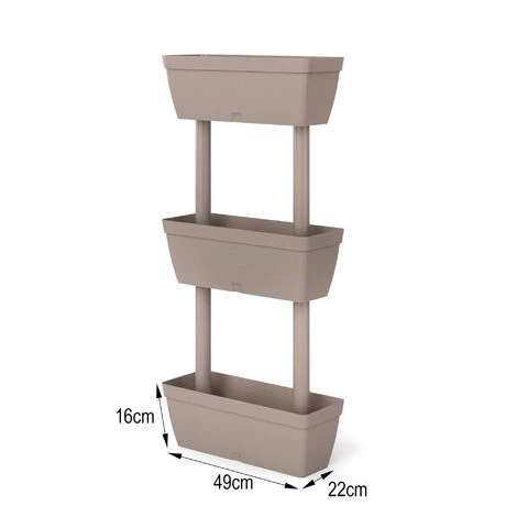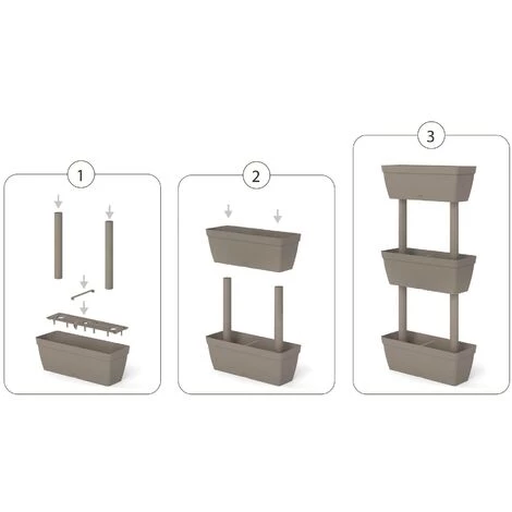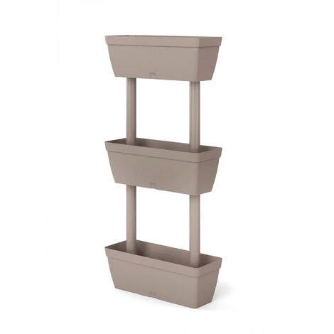 JARDINIÈRE VERTICALE – Composition de trois vases pour la culture de plantes ou de fleurs d’intérieur ou d’extérieur, entièrement de couleur gris tourterelle.