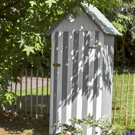 Armoire de jardin Wissant assemblée à partir de bois de pin. Avec 1,93 mètre de hauteur, sa surface utile de 0,44 m3 et ses 3 étagères elle offre un bel espace de rangement à l’extérieur de votre habitation.