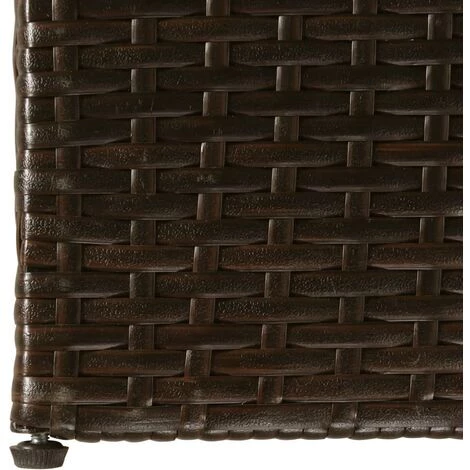 Cette bo?te de rangement d’extérieur en résine tressée est idéale pour ranger les coussins de meubles de jardin, les oreillers, les couvertures supplémentaires, les serviettes ainsi que les bibelots ménagers et bien plus encore. Grace à la résine tressée résistante aux intempéries, le coffre de rangement est facile à nettoyer, résistant à l’usure et convient aussi bien à un usage extérieur qu’intérieur. La bo?te de rangement de jardin est dotée d’un cadre en acier robuste, enduit de poudre, qui est très durable. La doublure avec fermeture éclair protège le contenu de l’humidité. Le coffre de rangement a un design moderne qui s’adapte à tout espace de vie extérieur ou intérieur. La bo?te de rangement est facile à assembler. Remarque : veuillez couvrir la bo?te à coussins par un tissu / un matériau imperméable pour empêcher la pluie d’entrer dans la bo?te s’il pleut.