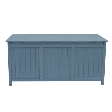 Coffre de jardin en bois « Macao » – 500 Litres – 130 x 64 x 60 cm – En bois de sapin – Mettez à l’abri votre matériel – Supporte jusqu’à 30 kg – Bleu cielCoffre de jardin en bois « Macao » Des rangements dans le jardin Le coffre de jardin Macao vous propose un véritable espace de rangement dans votre jardin. D’une capacité de stockage de 500L, ce coffre peut être utilisé pour y ranger vos housses de mobilier de jardin, vos coussins de jardin, les jouets des enfants ou encore vos petits matériels de bricolage et de jardinage.