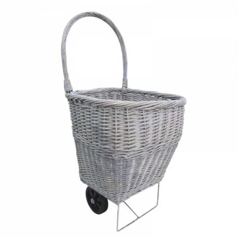 Chariot à bûches en osier gris. Fond bois anti-poussière. Chassis et anse monobloc métalliques.Matière : osier gris