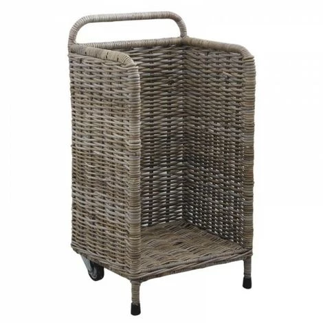 Chariot à bûches en poelet gris et métal.Matières : poelet gris et Métal
