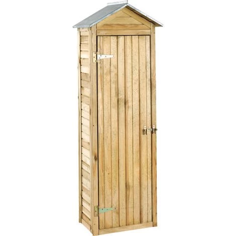 Cette armoire de rangement est de petite taille, ce qui vous offre un rangement pratique et idéal pour vos outils de jardinage. Par ailleurs, ce petit rangement vous évitera sur le long terme une perte de temps à force de chercher quelque chose de précis dans votre garage. De plus, en bois, il se fond naturellement dans votre jardin. Vous pouvez également la personnaliser selon vos goûts et vos choix ! Elle dispose d’une toiture en acier galvanisé pour une étanchéité très efficace. Un beau compromis pour une solution de rangement compact offrant toutefois une bonne capacité. Son bois est traité autoclave classe 3, afin de vous garantir une très haute résistance à l’humidité et aux alternances répétitives d’humidité et de sécheresse. Il est labellisé FSC garantissant une gestion durable de la forêt d’où provient ce bois. Dimensions : 63 x 43 x 181 cm Essence du bois : Pin sylvestre