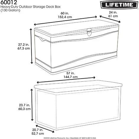 - Dimensions extérieures : (152,5 cm x 61 cm x 67 cm)