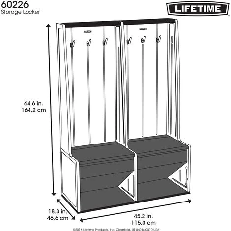 - Voyez les choses d’une autre façon en mettant fin au désordre dans votre maison et en réservant un espace à l’organisation et à la commodité. Grâce à l’armoire de rangement double Lifetime, créez facilement de l’espace autour de votre maison, dans votre garage, vestiaire d’entrée ou vestibule où vous pouvez entreposer des chaussures, des vêtements d’extérieur ou pleins d’autres articles.