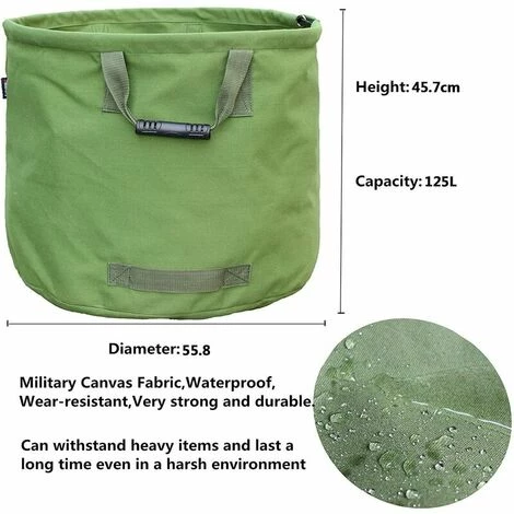 Polyvalent – Ce sac à déchets de jardin réutilisable facilite le nettoyage de votre jardin. En outre, cela peut vous aider à récolter des fruits, des légumes et d’autres cultures. Vous pouvez même l’utiliser comme grand sac de rangement pour la maison ou comme sac de rangement pour le camping.Heavy Duty – Le sac de jardinage est un sac de jardin résistant réutilisable. Vous pouvez l’utiliser comme sac à gazon, sac à feuilles ou sac à déchets réutilisable. Il peut résister à ces objets lourds. verwenden. Es kann diesen schweren Gegenständen standhalten.Robuste et durable – Le sac de jardin est fabriqué en toile militaire. Le tissu est très fort et durable. Ce sac à ordures de jardin très résistant durera longtemps, même dans un environnement hostile. selbst in rauer Umgebung lange Zeit.Pratique à utiliser – Une paire de poignées en caoutchouc rend le transport plus confortable. Les sangles de transport sont spécialement renforcées et difficiles à déchirer. Un os élastique en PVC est utilisé pour le garder rond et facile à utiliser.