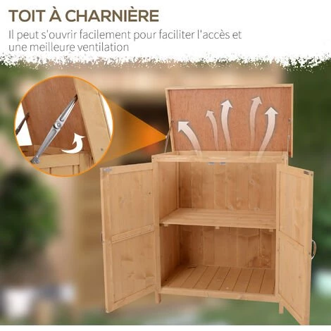 Cette superbe armoire de jardin compacte avec double porte, étagère et toit relevable vous deviendra vite indispensable. Très pratique et offrant un espace utile de rangement conséquent, vous pourrez y ranger vos outils ou autres accessoires.