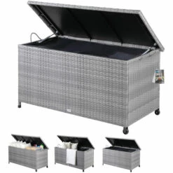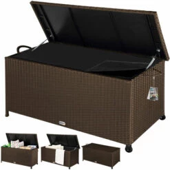 CASARIA Coffre De Rangement En Polyrotin Malle Boîte Stockage Jardin Terrasse – Brun Ou Noir Brun