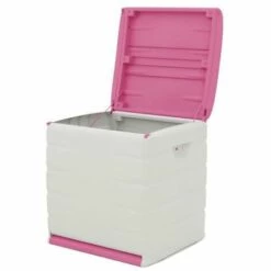 PLASTIKEN Coffre Cadenassable Avec Roulettes – 190 L – Fonctionnel Et Esthétique – Beige Et Fushia