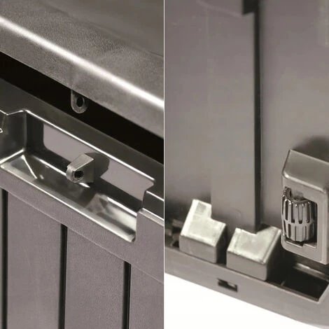Boîte de rangement universelle effet bois de couleur anthracite- Capacité de 290L pour le stockage des outils de jardin.- Utilisation toute l’année grâce à un plastique résistant aux intempéries.- Le couvercle verrouillable permet un accès facile et sécurisé.- Le coffre de jardin conserve sa forme pratique et vous pouvez profiter longtemps de sa belle apparence sans entretien.- Dimensions : 116,6 x 47 x 59,5 cm.