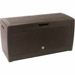 Coffre adapté à tout type de stockage d’une capacité de 310 litres avec une finition similaire au rotin.Ce coffre de rangement peut être utilisé aussi bien à l’extérieur qu’à l’intérieur. Idéal pour ranger les coussins de vos meubles de jardin, les jouets d’extérieur pour les enfants, les outils nécessaires à l’entretien de votre piscine, etc.Un produit fabriqué en plastique de haute qualité.Avec un traitement contre les rayons UVA et UVB.Facile à assembler grâce aux panneaux cliquables préassemblés, aucun outil nécessairePossibilité de verrouiller le coffre avec un cadenas. (cadenas non compris).Comprend des roues pour un transport facile et des poignées confortables.Dimensions : 119 x 48 x 60 cm.