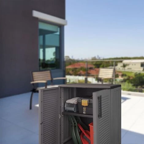 Cette armoire de rangement de jardin est idéale pour organiser et ranger vos articles ménagers, vos outils ou tout autre objet dans le jardin ou sur la terrasse. L’armoire est fabriquée en 100 % polypropylène (PP), ce qui la rend robuste, durable et facile à nettoyer. Les charnières en acier garantissent également la haute qualité de l’armoire de patio. De plus, l’étagère de rangement comprend deux niveaux, dont l’un est réglable, offrant ainsi un espace suffisant pour accueillir des articles de différentes tailles. L’armoire de jardin a un design compact et tirera le meilleur parti d’un espace limité.
