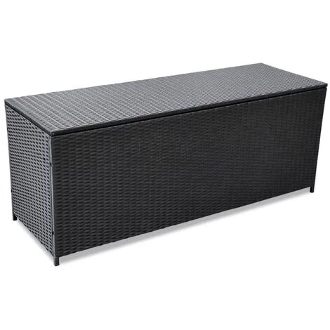 Cette boîte de rangement de jardin en résine tressée peut être utilisée pour ranger des coussins de meubles de jardin, des oreillers, des couvertures supplémentaires ou des serviettes ainsi que des bibelots et bien plus encore. La boîte de rangement est vraiment polyvalente, car elle peut servir de banc grâce à la grande capacité de charge ! Le coffret magnifiquement conçu a un design moderne qui conviendra à tous les espaces de vie en plein air. Cette boîte de rangement d’extérieur durable est faite de résine tressée de haute qualité et dispose d’un cadre en acier revêtu de poudre robuste. Remarque : veuillez couvrir la boîte à coussins par un tissu / un matériau imperméable pour empêcher la pluie d’entrer dans la boîte s’il pleut.