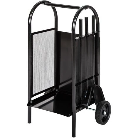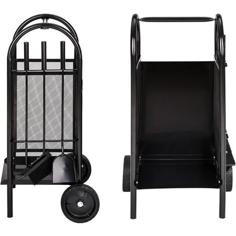 Chariot à Bûches, Chariot à Bois, Panier en Métal, Porte et Range Bûche sur Roulette avec Pelle, Balai et Tisonnier TECTAKE. Chariot à Bûches / Bois design pour le transport et le stockage du bois de cheminée. Ce chariot allie l’esthétisme et l’utilité à la perfection.