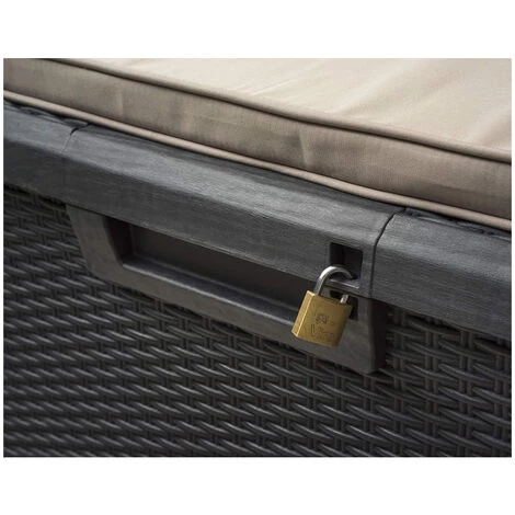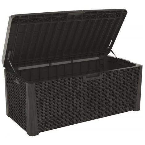 Ce coffre de jardin est idéal pour ranger vos accessoires de jardin comme des coussins ou matériel de jardin par exemple. Il peut également servir d’assise. Grâce à son aspect rotin il se mariera parfaitement avec votre extérieur.