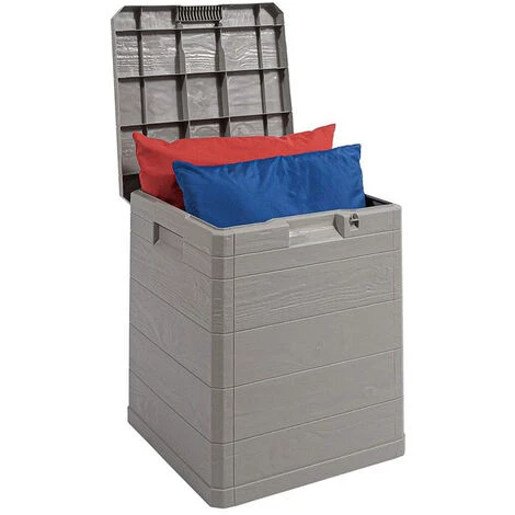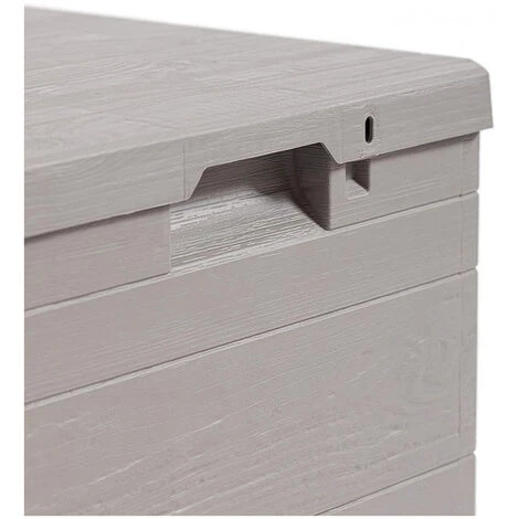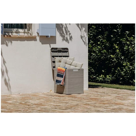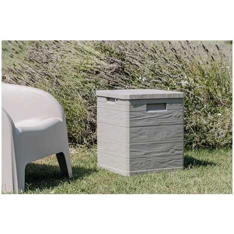 Ce coffre de rangement est idéal pour ranger vos accessoires de jardin comme des coussins par exemple. Il peut également servir d’assise. Grâce à son aspect bois il se mariera parfaitement avec votre extérieur.