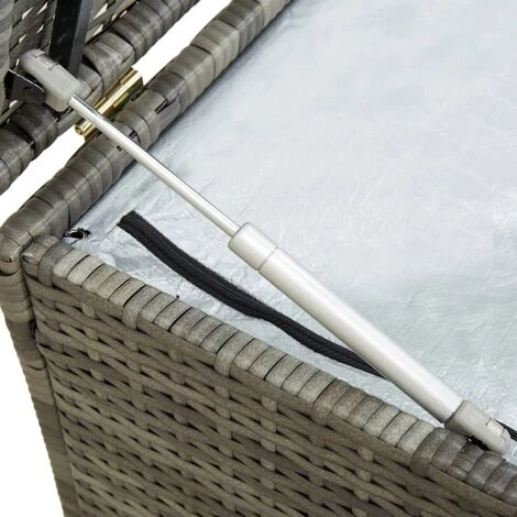 Êtes-vous à la recherche d’un moyen de rangement extérieur attrayant et polyvalent ? Alors notre boîte de rangement en résine tressée est un choix idéal pour vous ! Conçue avec un coffre spacieux, elle est assez grande pour ranger des articles de jardin comme : coussins de meubles, oreillers, couvertures supplémentaires, jouets de piscine et fournitures de jardinage. Cette boîte de rangement est fabriquée à partir d’un cadre en acier enduit de poudre et de résine tressée tissée à la main, qui est durable, antirouille et résistante aux intempéries pour des années d’utilisation fiable. Il a une doublure résistante à l’eau, qui protégera le contenu de la poussière et de l’humidité. Grâce aux pieds surélevés, cette boîte de rangement assure une bonne circulation de l’air en dessous et garde l’essentiel au sec et propre. De plus, elle dispose du mécanisme de levage à gaz pour que vous puissiez ouvrir et fermer le couvercle supérieur sans effort. Elle est facile à nettoyer avec un chiffon humide. La boîte de rangement est facile à assembler.